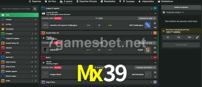 O Mx39 oferece uma grande seleção de opções de apostas em e-sports com probabilidades competitivas
